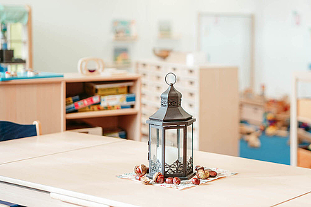 Selbst mitgebrachtes Frühstück, Wasser, Milch und saisonaler Tee zur freien Verfügung, das Mitbringen eigener Getränke ist ebenso möglich.