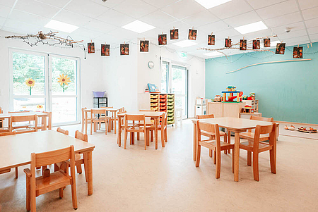 Im Dezember 2021 öffnen wir unsere Türen erstmals für unsere zwei Gruppen – die Familiengruppe und die Integrationsgruppe. In der Familiengruppe werden Kinder von eins bis sechs Jahren betreut und erleben so ihre gesamte Kita-Zeit ohne den Wechsel der Gruppe oder Einrichtung. Wir möchten damit eine verlässliche Bindung, das Gefühl der Geborgenheit sowie der Zusammengehörigkeit sowie langfristige Freundschaften und gegenseitiges Lernen fördern. In unserer Integrationsgruppe legen wir den Fokus auf die gemeinsame Betreuung, Bildung und Erziehung von Kindern mit und ohne Beeinträchtigung. Sie wachsen zusammen auf, spielen miteinander, lernen voneinander und sind füreinander da. Frei nach dem Motto: „Es ist normal verschieden zu sein. Es gibt keine Norm für das Menschsein.“ (Richard von Weizsäcker).