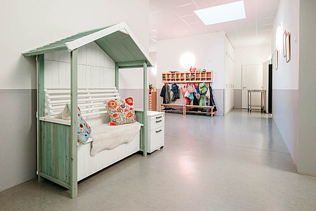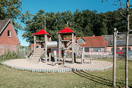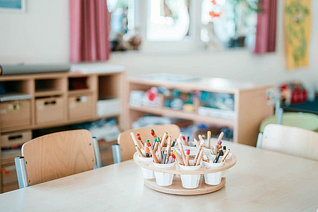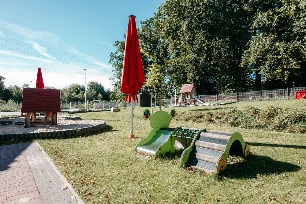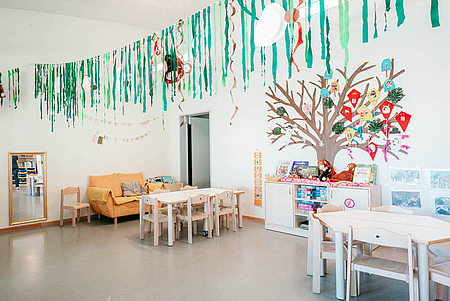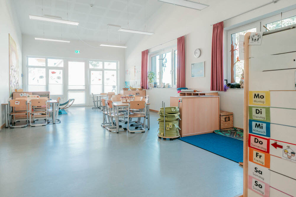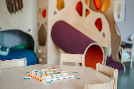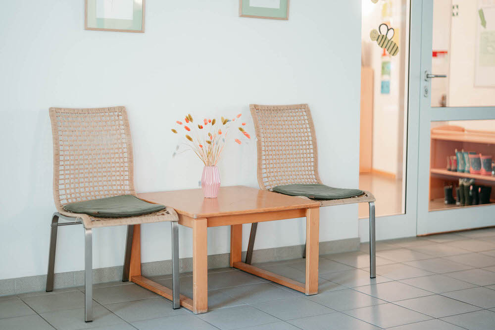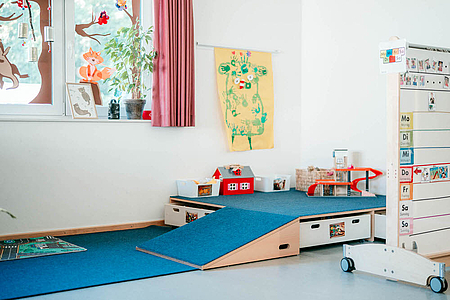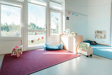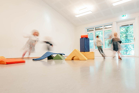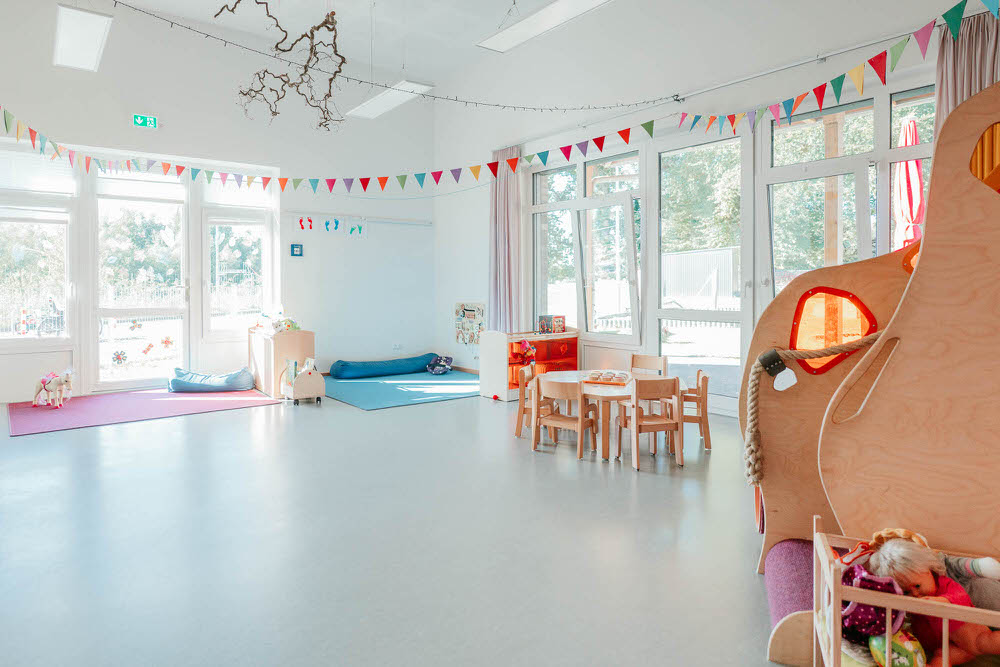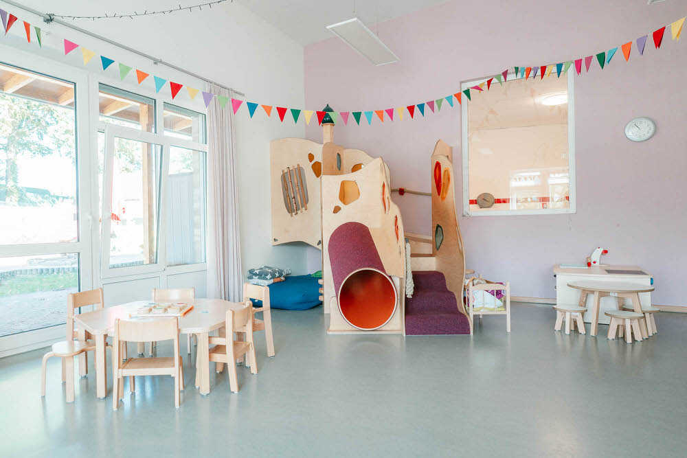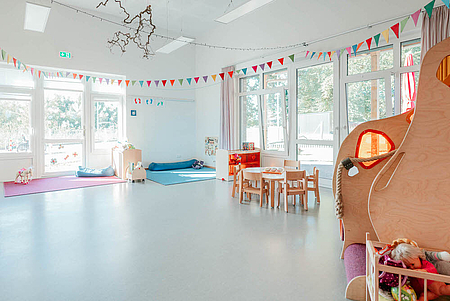 In unserer liebevoll und pädagogisch wertvoll eingerichteten Kindertagesstätte wird den ganzen Tag gespielt, gelernt, gesungen und sich vor allem viel bewegt - entweder an der frischen Luft oder in unseren großzügigen Gruppenräumen, die viel Platz zum Toben oder gruppenübergreifenden Aktionen bieten.