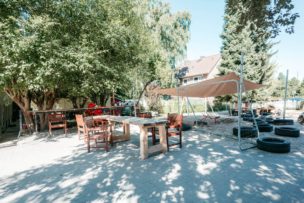Nachhaltigkeit und Ressourcenschutz gehören ebenfalls zu unseren Schwerpunkten. Wir bewirtschaften einen kleinen Nutzgarten, dessen Ernte in unsere Tagesversorgung mit einfließt. In dem Zusammenhang versuchen wir, Plastik- und Verpackungsmüll zu vermeiden und gemeinsam mit den Kindern Herstellungsprozesse, z.B. von Saft, Marmeladen, Gelees oder auch Gummibärchen, in unser Tagesgeschehen mit einzubauen und erlebbar zu machen.