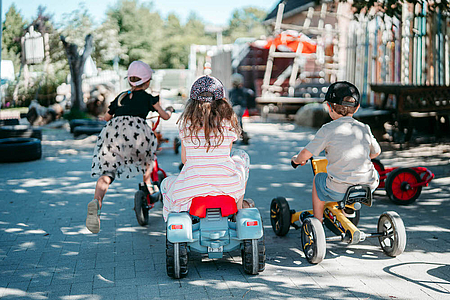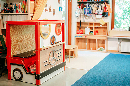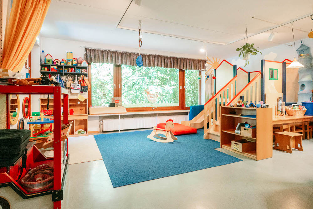 Zentral an der Bahn und doch ruhig in einem grünen Wohngebiet gelegen, besticht unsere Kita durch zahlreiche liebevoll eingerichtete Gruppenräume und viel Platz zum Spielen, Toben und Lachen! Frische Luft tanken wir in unserem schönen Garten.