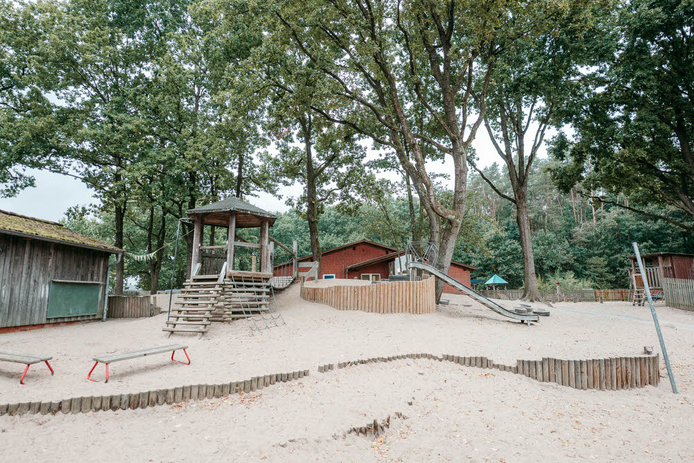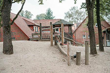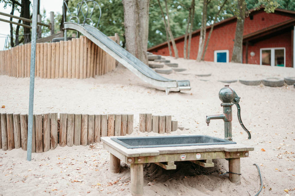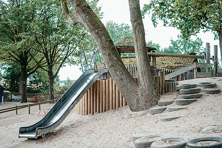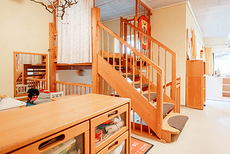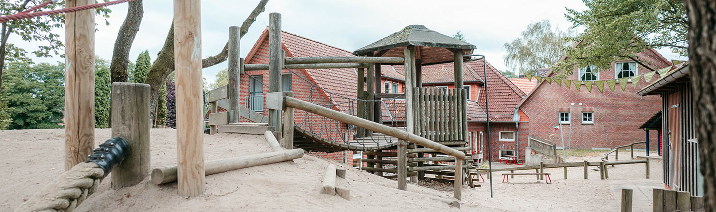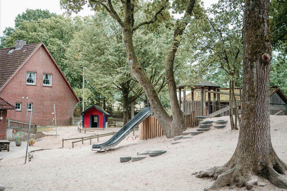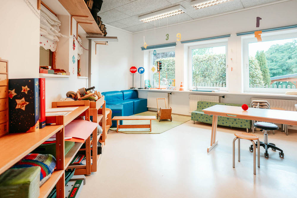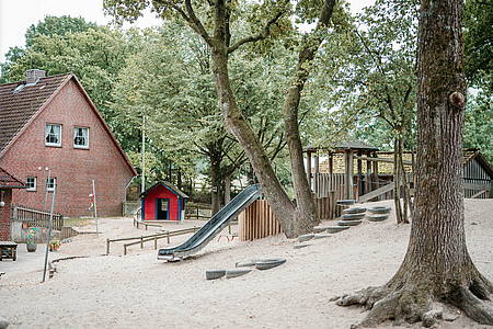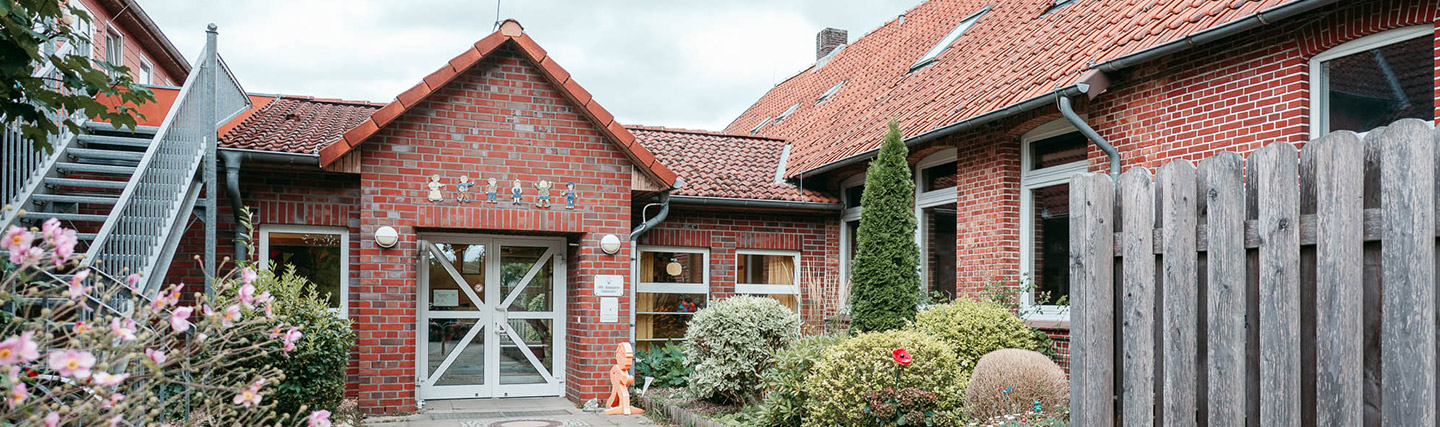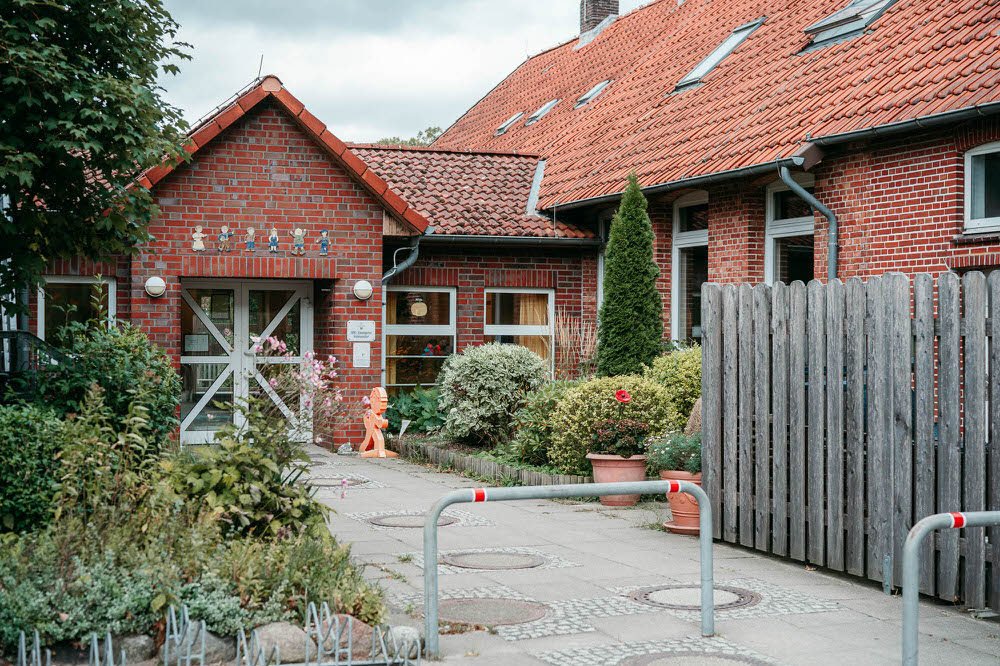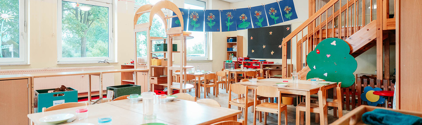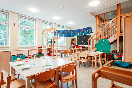 Unsere 1994 eröffnete Kindertagesstätte ist umringt von einem parkähnlichem Außengelände und wunderschöner Natur, die zum Entdecken einlädt. Mehr als 160 Kinder lernen, lachen und spielen hier täglich draußen oder in unseren einladenden Gruppen- und Bewegungsräumen.