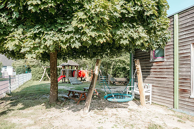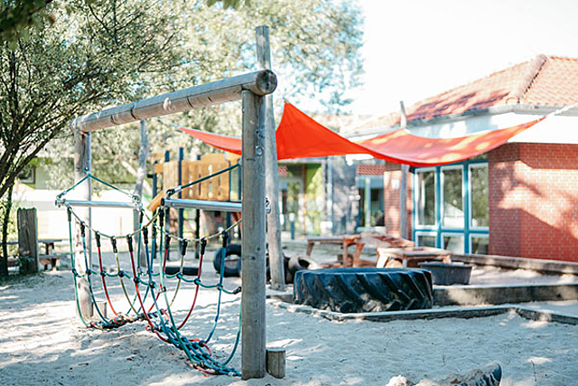 Unsere Kindertagesstätte ist ein Ort zum Wohlfühlen. Sie besticht durch ein ca. 4000 qm großes, naturnah gestaltetes und bewegungsfreundliches Außengelände mit zahlreichen unterschiedlichen Spielgeräten.