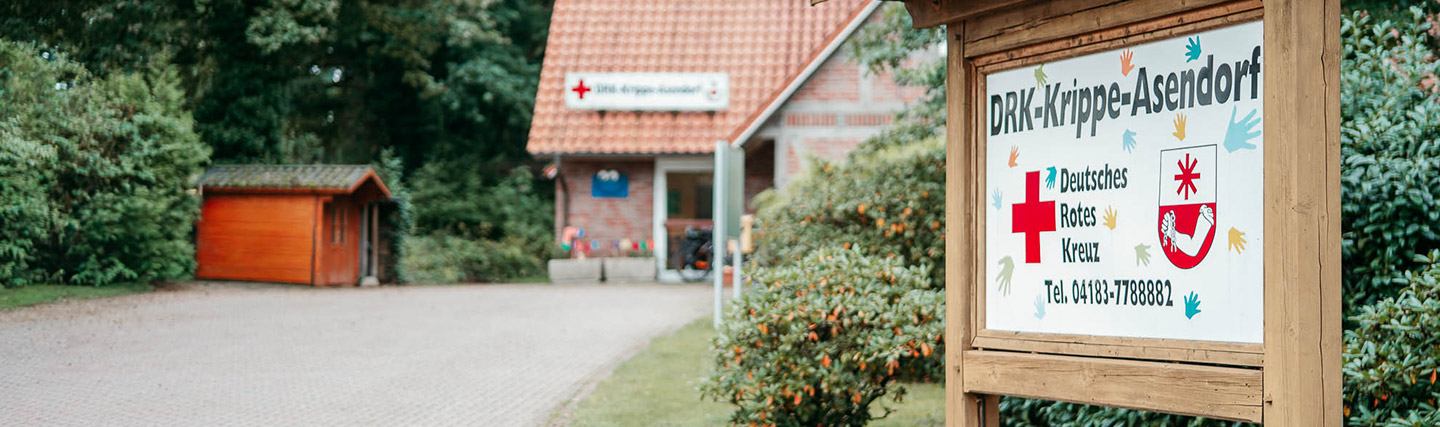 Die DRK-Kita Asendorf umfasst vier Gruppen: eine Krippengruppe in einem extra Gebäude (Jesteburger Str. 9, 15 Plätze für Kinder von 1 – 3 Jahren), eine Regelgruppe (25 Kinder im Alter von 3-6), eine Integrationsgruppe (18 Kinder 3-6 Jahre, davon 4 Plätze für Kinder mit sonderpädagogischem Förderbedarf) und eine Altersübergreifende Gruppe (25 Plätze für Kinder von 1-6 Jahren, ein Krippenkind zählt zwei Plätze). Insgesamt können bis zu 83 Kinder betreut werden. Die Regelbetreuung findet täglich zwischen 08:00 Uhr und 14:00 Uhr statt. Es gibt einen Frühdienst ab 07:30 Uhr und 25 Spätdienstplätze bis 16:00 Uhr.