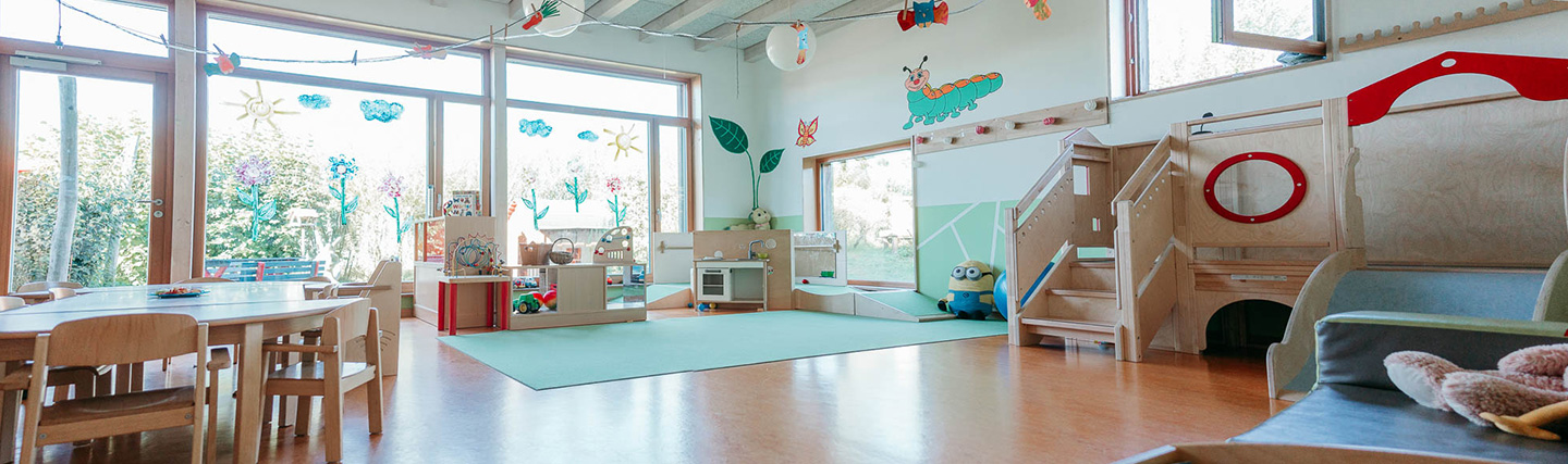 In unserer kunterbunten Kindertagesstätten, die es seit 1994 gibt, sind uns Ausflüge in die Natur besonders wichtig. Wir haben einmal wöchentlich einen "Waldtag", an dem Ausflüge in die umliegenden Wälder unternommen werden und bewegen uns viel draußen an der frischen Luft. Um anschließend wieder neue Kraft für Projektarbeit oder das Freispiel zu tanken, bauen wir immer wieder "Ruhephasen" in den Kita-Alltag der Kinder ein, in denen wir gemeinsam entspannen.
